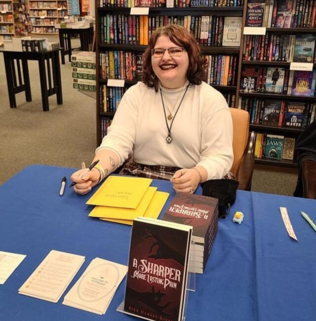 It is said Alex has known they wanted to be a writer since the age of two, when they would carry around and scribble in their mother's Tomb Raider guide. Alex would argue they started instead when they were six, writing fanfiction of their parents' World of Warcraft characters. Regardless, their obsession with the written word has been one long-lived and one planted early. From Warrior Cats to The Witches of Eileanan and beyond, Alex has always had a fascination with the fantastical and the strange, the human and the other.Come early high school, Alex would develop their longest-lasting fantasy world (and several accompanying projects) to date: Mesiphrae. Their first source of inspiration was found in the works of FromSoft, which would continue to be an inspiration to them as they got older. Mesiphrae would first see itself featured in Alex's first published short, "The Temple on Cicaro Hill", and has continued to grow and change as they have. Its most recent appearance was in A Sharper, More Lasting Pain.Alex loves all things monstrous, and often find themself writing characters with grimy coats between their layers. Even heroic characters land on the scuffed side of perfect. Alex likes to focus on themes of self-actualization and discovery as an adult, complex relationships of all sorts, disability and neurodivergency, and the many shapes of queerness. Most often, this takes form in sapphic sometimes-women. Additionally, they have pivoted in recent years to feature the culture of Malta, where their family is from, wherever they can in their works. It is their aim to write and find fellow pioneers of Maltese fantasy.When they aren't writing, Alex daylights as an aircraft sealer for a massive aerospace company, plays video games from their sizeable collection, inhales video essays on a variety of topics, and reads the books of their indie peers. They find kinship in their doting partner and their three children: Sagora the snake, Lyndis the turtle, and Wisp the cat. Inspiration for them lies in everything they touch.